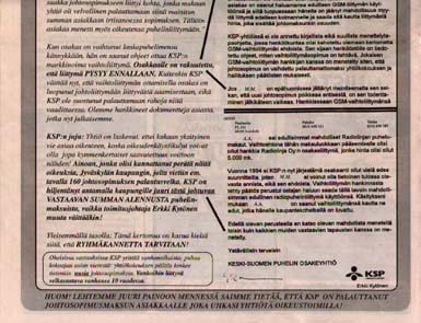 kaupunki on KSP:n suurin osakas puhelinliittymien kautta."