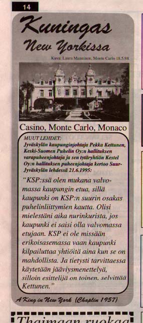 Kestel Oy:n hallituksen puheenjohtaja Suur-Jyväskylän lehdessä