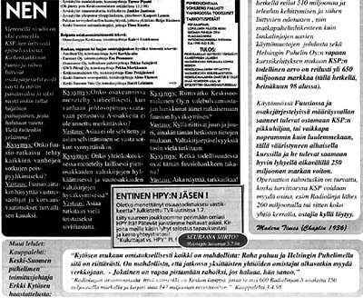 Raha puhuu ja Helsingin Puhelimella sitä on riittävästi."