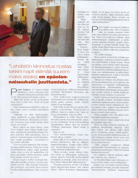 "Jyväskylän kaupunginjohtaja Pekka Kettunen huhki kaikkensa antaen yhtiön muuton eteen ja onnistui." | ||