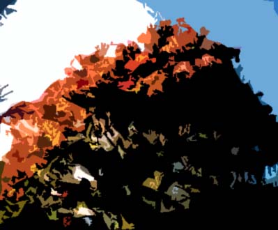 vaahtera. Kuvannut Pertti Manninen. Kuvankäsittelyohjelman muuntimet: sponge, cutout, stainedglass, wind. |