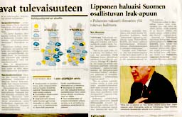 Lipponen haluaisi Suomen osallistuvan Irak-apuun. Helsingin Sanomat keskiviikkona 11.06.2003. |