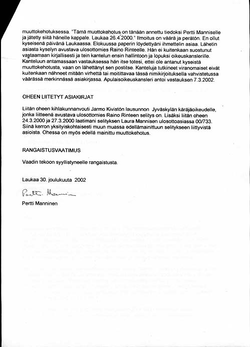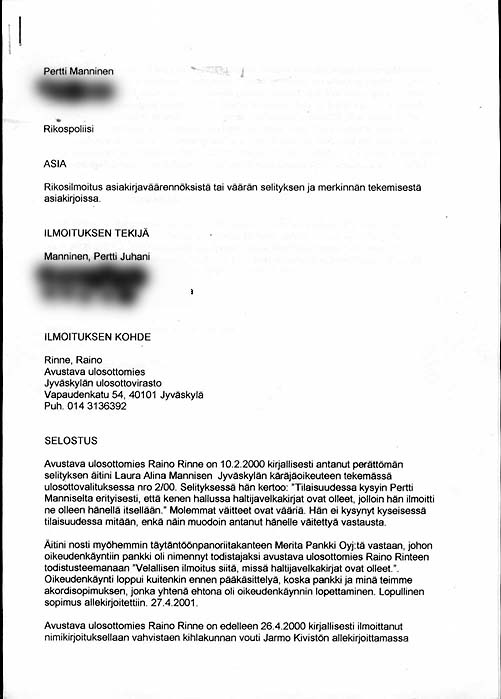 30.12.2002 Rikosilmoitus asiakirjaväärennöksistä