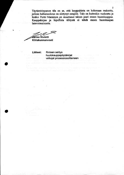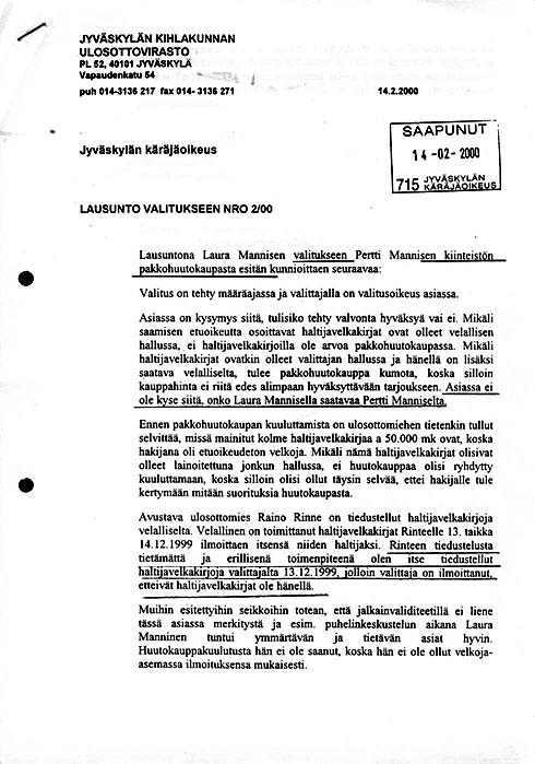 Liite. Lausunto valitukseen nro 2/00. (Kihlakunnanvouti Jarmo Kivistö).![]() ![]() |