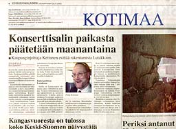 TOIMITUS. Päätoimittaja. Yhteydenotto: nettisanomat@hotmail.com. Copyright nettisanomat.com 2003/218. Sivut valmisti Pertti Manninen 02.10.2003, (October 2, 2003 21:16). Vanhempi kesätoimittaja ja kesätoimittaja. Kuvannut Pertti Manninen. 2003/10/02 - nettisanomat.com - Jyväskylä - Keisarin uudet vaatteet. - Konserttitalon paikasta päätetään maanantaina. Kaupunginjohtaja Kettunen esittää rakentamista Lutakkoon. - Keskisuomalainen lauantaina 20.09.2003. Kotimaa. Eeva Salminen. - Näin aloitettiin! Jyväskylän kaupunkikuva köyhtymässä. - Näin jatkettiin! Harjun huminaa. - Näin selitettiin! Viikon Kettunen. - Kaupunginjohtaja Pekka Kettusen osallistuminen Keski-Suomen Puhelimen (Puhelin) kaappausyritykseen! - Kaupunginjohtaja Pekka Kettusen luonteenpiirteitä! - Kaupunginjohtaja Pekka Kettusen sosialisointihanke! - Kaija-Leena Kaijaluoto - Sonera - Paviljonki - kaupunkikuva - Rhodorendron - arkkitehtuurikilpailu - 02.10.2003 - avoin - joka torstai - kuva - kuvat - pertti manninen - nettisanomat. |