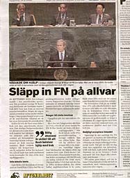TOIMITUS. Päätoimittaja. Yhteydenotto: nettisanomat@hotmail.com. Copyright nettisanomat.com 2003/219. Sivut valmisti Pertti Manninen 09.10.2003, (October 10, 2003 12:12). Vanhempi kesätoimittaja ja kesätoimittaja. Kuvannut Pertti Manninen. 2003/10/09 - nettisanomat.com - media . Puhe ja tulkinta. - Presidentti George W. Bush YK:ssa tiistaina 23.09.2003. - Tinkimätön Bush patisti YK:n jäsenmaita töihin Irakissa. Presidentti ei luvannut YK:lle keskeistä asemaa. Helsingin Sanomat. 24.09.2003. - Bush bad FN om hjälp i Irak. USA-presidenten försvarade kriget i sitt tal till generalförsamlingen. Dagens Nyheter. 24.09.2003. -Släpp in FN på allvar. Dålig ekonomi är skälet till att Bush behöver hjälp med Irak. Aftonbladet. Ledare. 26.09.2003. - 09.10.2003 - avoin - joka torstai - kuva - kuvat - pertti manninen - nettisanomat. |