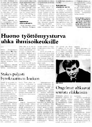 30.10.2003. Työttömyysturvan kiristyminen vaarantaa ihmisoikeuksia. Helsingin Sanomat piilotti tämän mielipiteen toisen jutun sisään. |