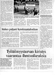 pakkotyöllistämistä". PS. Kyseisen päivän lehdistä käytössäni oli myös Aamulehti ja Suomenmaa, joissa kummassakaan ei käsitelty ihmisoikeusasiaa. Työttömyydestä ja työllisyydestä oli kyllä muita artikkeleita. Sama. Lue myös! Työtä |