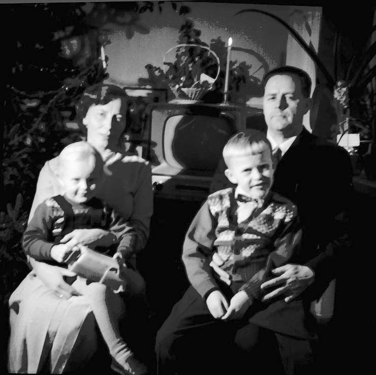 kuvaa 3 perheestä 43 vuoden takaa Helsingin Kalliossa Jouluna 1957. Alkuperäiset kuvan nimet vuoden 1957 negatiivikirjasta. Kuvannut Pertti Manninen kahta vuotta aikaisemmin lahjaksi saamallaan venäläisellä Ljubitelj II- kameralla. |