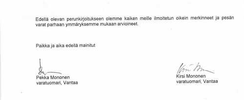 ja Kirsi Mononen, varatuomari), jonka nojalla asianajaja Pekka