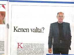 17.08.2004. Lipponen ja Vanhanen - oligarkia oligarkian sisällä. "Tämä vahvistaa sen, mitä havaitsin väitöskirjassanikin , että oligarkian sisällä on oligarkia. Kaksi kolme ihmistä on päättänyt asian, josta piti keskustella hallituksen sisällä ja eduskunnan kesken." Kansanedustaja Arja Alho oligarkian ilmoituksesta, että kansanäänestystä EU:n perustuslaista ei järjestetä. Oligarkia. Kuva: Pertti Manninen. |
