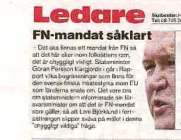 Matti Vanhasen hallitus on suhtautunut kylmästi Nato-keskusteluun ja korostanut Suomen "sotilaallista liittoutumattomuutta". Sen katveessa hallitus on osallistunut aktiivisesti mutta poliittista dramatiikkaa huolellisesti karttaen EU:n sotilaallisen kriisinhallintakyvyn rakentamiseen ja ilmoittautunut nyt myös perustettaviin unionin nopean toiminnan joukkoihin eli kriisialueille lähetettäviin monikansallisiin taisteluosastoihin."