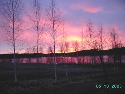 Nettisanomat tiistaina 10.05.2005 "PICT3392punainenilta400.JPG" Auringon kaipuu. Laukaa. Kuva Pertti Manninen. Isonna!