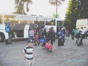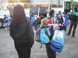 Perjantaina 10.06.2005. "Jyväskylä Cup 2005. Kamat ulos 1. KyIF F-95 juniorit. Tulo majapaikkaan Huhtaharjun koululle Jyväskylään perjantai-iltana 10.06.2005 puoli kymmenen aikaan. Kuva Pertti Manninen. Jyväskylä. Huhtasuo. |
