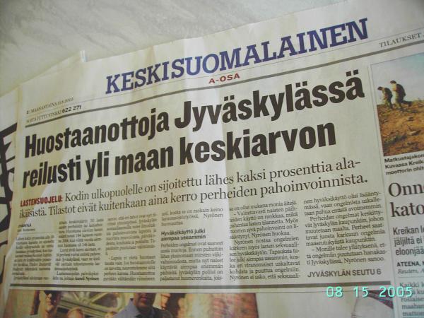 nettisanomat - 2005/08/15 - Kuva - "Huostaanottoja Jyväskylässä reilusti yli maan keskiarvon." Keskisuomalainen 15.08.2005.. - Pertti Manninen - maanantaina 15.08.2005 - kuva - kuvat - pertti manninen - nettisanomat. |