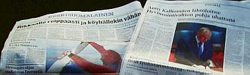 nettisanomat - 2005/09/17 - "Budjetti: Rikkaalle reippaasti ja köyhällekin vähän eli hyvinvointivaltion pohja uhattuna." Kuva lauantaina 17.09.2005. Eräästä pienestä yksityiskohdasta: varallisuusveron poistamisesta Keskisuomalainen kirjoitti otsikkoaan myöten. Sensijaan Helsingin Sanomat ei kirjoittanut varallisuusveron poistamisesta halaistua sanaa. - Antti Kallomäki - Etusivu lauantaina 17.09.2005 - kuva - kuvat - pertti manninen - nettisanomat |