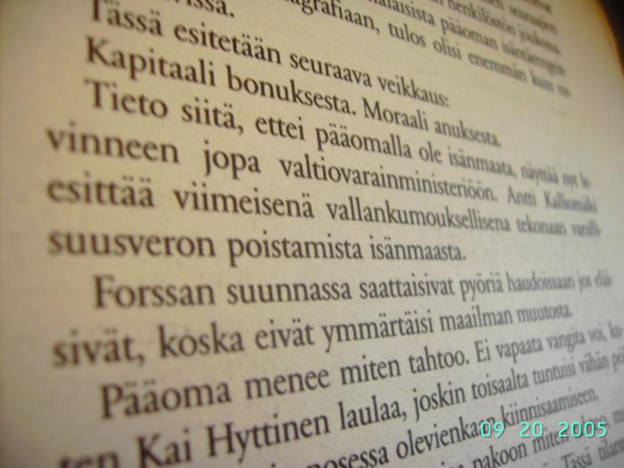 nettisanomat - 2005/09/20 - Bisquit - Seppo Ahti. Maa ja maksattaminen - Iltasanomat 20.09.2005. - Varallisuusveron poisto. "Budjetti: Rikkaalle reippaasti ja köyhällekin vähän eli hyvinvointivaltion pohja uhattuna." Kuva lauantaina 17.09.2005. Eräästä pienestä yksityiskohdasta: varallisuusveron poistamisesta Keskisuomalainen kirjoitti - Helsingin Sanomat ei kirjoittanut halaistua sanaa. - Varallisuusvero - Antti Kalliomäki - Aatos Erkko - Ben Zyskowicz - Päivi Ketolainen - Rikkaat - rikas - köyhät - köyhä - köyhyys - Kuva: Sanomapallo Suomessa vuonna 1999 (?). - tiistaina 20.09.2005 - kuva - kuvat - pertti manninen - nettisanomat. |