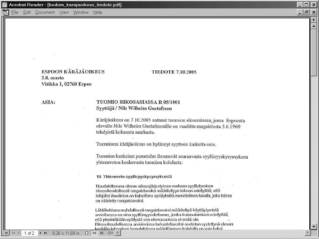 käräjä- oikeuden tuomio kokonaisuudessaan. Lue! |
