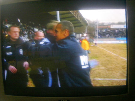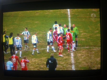 Saddamin kuolemantuomio ja Yle. Kuka määräsi muuttamaan kommenttien järjestystä? Vasemmassa kuvassa Tv2:n uutislähetys sunnuntaina 2006-11-05 klo 18.03. Myöhemmin illalla klo 21.50 alkaneessa TV2:n uutislähetyksessä kommenttien järjestys oli vaihtunut. Vasemmalla aito kuva ja oikealla siitä muokattu kuva, joka olisi otettu, jos kamera olisi ollut valmiina. Ylessähän molemmat uutislähetykset ovat tallella!