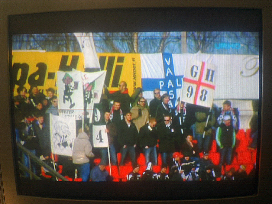 - Jaron VIP-katsomo ja fanikatsomo. - JJK voittaa ottelun 1-0 konkari