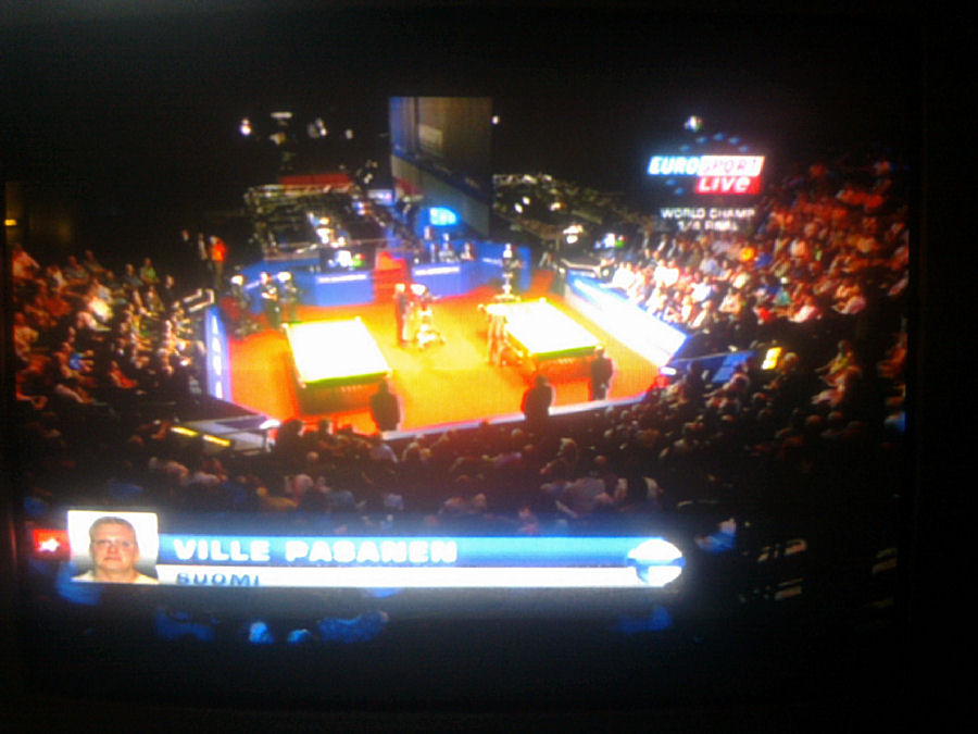 Eurosport lähettää suoraa kuvaa snookerin MM-kilpailuista suomeksi selostettuna, Ville Pasanen.