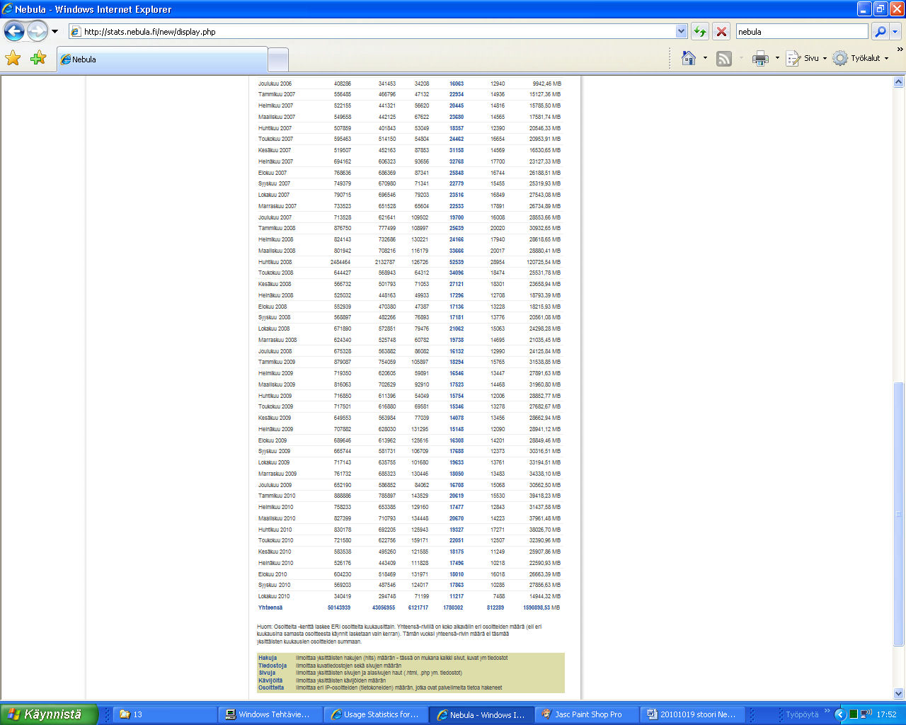 Nettisanomat. Kävijätilastot. Marraskuu 2002 - Lokakuu 2010 (01-19 päivät). | ||