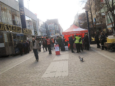 ![]() Kuva sattumalta ohikulkien ja muutaman sanan vaihtaen Pertti Manninen. Keski-Suomi. Jyväskylä. Kauppakatu. Kompassi. Torstai 2011-04-14 klo 15:09. |