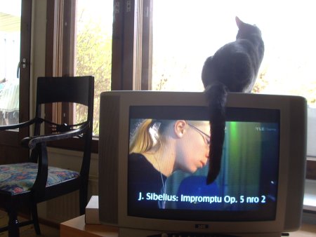 Heti vuoden vaihduttua ja tanssin alettua, klo 00.01 Ranskan aikaa, Suomen paukuttelun jo hiljalleen päättyessä. TV5MONDE EUROPE, Le plus grand cabaret. Kuva: Pertti Manninen torstaina 2009-01-01 klo 01.01. Sama vuosi sitten: Kuva.