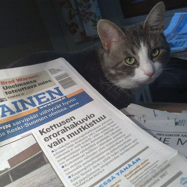 2006 2007 Äidin muistolle. Laura Aliina Manninen 05.03.1916 - 18.11.2007.![]() http://www.nettisanomat.com/2007/11/18/etusivu.htm 2008 "Vuosi sitten sunnuntaina 2007-11-18 äidin viimeisen fyysisen lämmön kokien" ![]() Jälkisanat tänään vuosipäivänä tiistaina 2008-11-18. Viimeiset viikkonsa äitini oli sairaalassa, jossa kävin häntä päivittäin katsomassa. Aina kun kerroin käyneeni ensin SYK:n uimahallissa Etelä-Haagassa, hän sanoi, että hyvä on kun siellä käyt. Niinpä tänään kirjoitan tätä Keski-Suomessa Peurungan uimalan kahviossa raukea olo seuranani uintirupeaman ja saunan jälkeen. Nyt julkaisemani kuvat on valikoima siitä hetkestä kun kuljin parin kilometrin matkan, korkeintaan, Marian sairaalasta asemalle kulkuneuvoa Kivihakaan etsien. En halunnut ottaa taksia tähän suuntaan, sillä kiirettä ei ollut mihinkään. Viimeinen erikoisbussi lähti nenän edestä ja rautatieasemalla vietin tunnin pari, ehkä. Kaupunkikuva liittyy nyt nopeasti äidinkin historiaan, olihan minun ensimmäinen muistikuvani isästäni rautatien laiturilla kun rattaissa istuen äiti saattoi isää rintamalle loman jälkeen. Ja Hotelli Tornissa äiti ja isä viettivät vuosikymmeniä sitten silloin tällöin iltaa kummitätini, liikenainen, Alman kanssa, joka omisti Elin Eriksson Oy muotiliikkeen Kalevankadulla Tornin vieressä. Surun suremisen katkaisi vuosi sitten asianajaja, joka kävi minun ja vainajan kimppuun ennen kuin hänet oli hautaan laskettu, joten tämäkin on nyt jonkinlainen surutyön päätös. Mustikkapiirakan ja kahvin nauttineena 20.10 linkkiin, bussiin, dösään tähdäten Pertti Manninen tiistaina 2008-11-19 klo 19.53. http://www.nettisanomat.com/2008/11/18/etusivu.html 2009 "Monsieur Verdoux? Olen tarkastaja Morrow poliisista. Minulla on teille asiaa." ![]() Kohtaus Charlie Chaplinin elokuvasta Monsieur Verdoux, Ritari Siniparta(1947). Kuvat YleTeeman esityksestä sunnuntaina 2009-11-15 Pertti Manninen. http://www.nettisanomat.com/2009/11/18/ etusivu.htm 2010 "Joulun tähti odottaa syttymistään kauppakadulla marraskuun hämärässä". ![]() Vaikka lunta sataa hiljalleen ja maa on valkoinen muualla, niin tässä lämpötilassa kauppakadun lämpöputket sulattavat lumen ja ihmiset joutuvat kävelemään vesilätäköissä. Kompassi. Kauppakatu. Jyväskylä. Jyväskylän seutu. Keski-Suomi. Torstai 2010-11-18 klo 14:47. Pertti Manninen. http://www.nettisanomat.com/2010/11/18/etusivu.htm Viikkosanomat-blogi Näin Haaparanta lähes sanatarkasti valtiovarainministeri Jyrki Kataisen pyrkimyksistä: ”No ei, se on tragikomiikan puolelle menevää. Jos hänen poliittinen suojeluskuntansa ei parempaan pysty. Olisin vähän jotain parempaa odottanut. Se tavallaan johtaa toisen valtion omaisuuden pakko-ottoon,eikä siinä ole mitään järkeä. Näin siis Aalto yliopiston professori Pertti Haaparanta. |