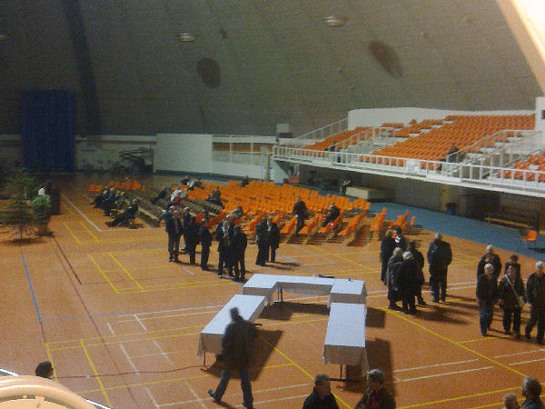 jo poistunut ja ryhmät käytävillä keskustelevat. Kupolin toisella puolella