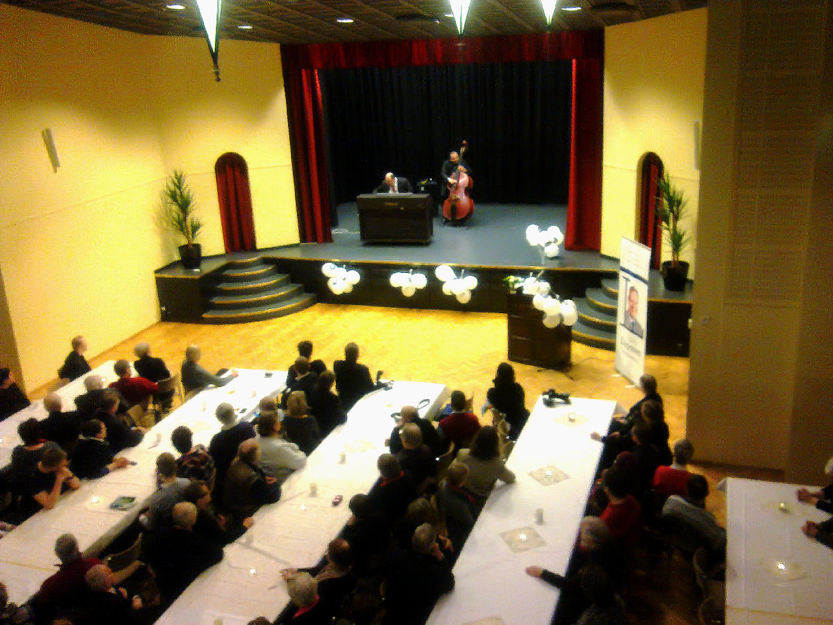 Nettisanomat 2012/01/14 - Vaaleja, Lipponen! Kuvia lauantaina 2012-01-14 klo 11-15. Keski-Suomi. Jyväskylä. Tourujoki - Rajakatu - Harjukatu - Paviljonki - Irish Bar - Aalto-sali - Våinönkatu. 1. Tourujoki on jäätynyt. 2. "Liskopatsas", Kari Allonen, ammattikorkeakoulun jaAlvar Aallon suunnitteleman ensimmäisen (?) asuinkerrostalon kupeessa. 3. Kauppamiesten näköispatsas. 4. Harjun kioski on muuttunut kioski "55":ksi koulukompleksin vierellä. 5. Jyväskylän Paviljonki ja korkeutensa saavuttanut Sokos-hotelli. 6. Sisään.7. Teuvo Hakkarainen hymyilee aulassa keskustelun välistä, pyynnöstä. 8. Rompepäivät vetävät väkeä niin, että on erehtyä sinne. 9. Toimi Kankaanniemikin on saapunut Timo Soinin puhetilaisuuteen. 10. Yleisön joukossa on julkinen Pekka Haaviston, "kakkosen", kannattaja. 11. Pieni kuulija ei innostu Soinin puheesta, jossa tämä mm. kertoo menettäneensä ulkoministerin tai valtiovarainministerin paikan pitäessään kiinni periaatteistaan. 12. Pentti Varkila soittaa huuliharpullaan "Finlandian" tilaisuuden alussa. Soini istuu ja Anitta Kangas seisoo. Paikalla on varmaankin parisataa kuulijaa, kun nonstop-kävijätkin lasketaan mukaan. 13. Paviljongin yläaulassa kahvittelusta tullessa törmää Jaakko Valon vuonna 2006 valmistuneeseen "Kulta-aikaan", vaneri, akryyliväri ja lyöntikulta.14. Rompetorilta Isä on löytänyt kaipaamansa pakoputken. 15. Irish Barin lämpöisessä tunnelmasssa voi vain muistella, kuinka lämmintä ulkoterassillakin kerran kesällä oli kun siellä nyt talven viima puhaltelee. 16. OHOH- ILTASANOMAT repäisee ainakin kunnon otsikot, kun se taas kiihdyksissään unohtaa "tutkimuksen" virhemarginaalit! 17. Paavo Lipposen vaalimainokset lumessa Aalto-saliin houkuttelemassa. 18. "On the Sunny Side of the Street" vain soluu taitureiden esittämänä, pianisti Marian Petrescu ja basisti Mihai Petrescu. Sali on täynnä, ylhäällä parvella on kyllä hyvin tilaa myöhästyneellekin. 19. Puolueen puheenjohtaja, valtiovarainministeri Jutta Urpilainen kehuu Paavo Lipposta ja muistuttaa kuinka gallupit nujerrettiin viime eduskuntavaaleissa. "Tasavallan presidentin virka ei ole mikään ulkosuhteiden harjoittelupaikka". 20. Kahvia tarjoilemassa ihan samannäköinen nuori nainen, joka Asunnottomien yön iltatunneilla tarjoili hernekeittoa ulkona Kompassin nurkilla viime syksynä. 21. Kahvijonot. 22. Rompetorilta tai sitten muualta tullut sivuvaunuilija pyörähtää Väinönkadulla. 23. Pieni koira näkee toisen pienen koiran kadun aurinkoisella puolella. 24. Söpöliinille on laitettu töppöset jalkaan tässä kahdeksan asteen pakkasessa, joka tuntuu kovin kylmältä viimaisina hetkinä. - Mobikuvat: Pertti Manninen. - TOP 20 Joulukuu 2011 - Presidentinvaalit 2012 - Julisteet tänään katukuvassa. Kuva: " 2, 3, 4, 5, 6, 7 tai joku muu". - Kuvat. "01.01.2012". - "The Jazzman" Kuva. - "Kiven hehku". Kari Alonen 2010. -- Lukijan kuva: "Katso tuolla on Hakkarainen!" - Kuva. Käden ojennus. Karuselli. - lauantai 14.01.2012 - kuvasivu - Nettisanomat - Sanomanetti - Blogi: Viikkosanomat.fi - Kuvasanomat - Sanomatori - Viikkosanomat - Härkää sarvista |