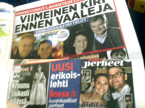 Kuvia maanantaina 2012-02-06: Finalistit parisuhdetentissä (Iltalehti 4.2.2012) 10:15 - Niinistö löi Haaviston Ylivoimaa (HS) 10:14 - Niinistö sai suurvoiton, kansa äänesti laiskasti (Keskisuomalainen) 10:13.
