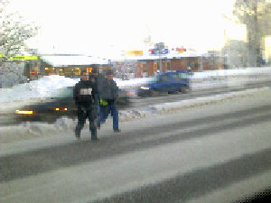 Maailmassa monta on ihmeellistä asiaa. Kuva Pertti Manninen. Jyväskylä. Asemakatu. Forum. Keskiviikkona 2008-11-12 klo 09:55.