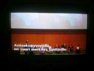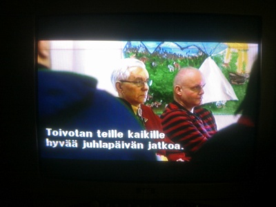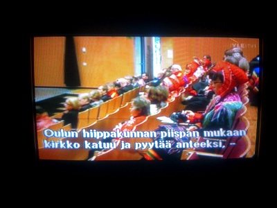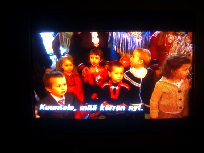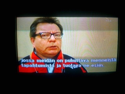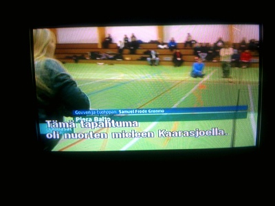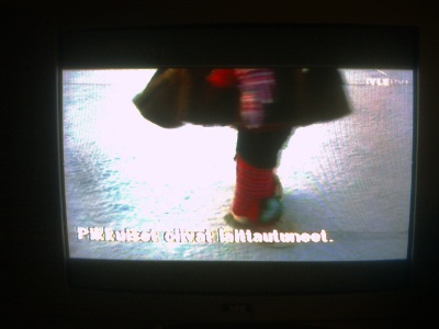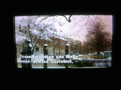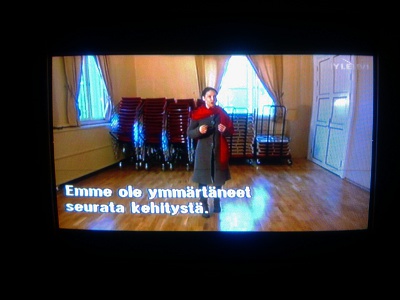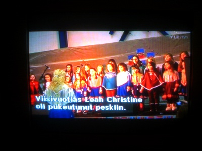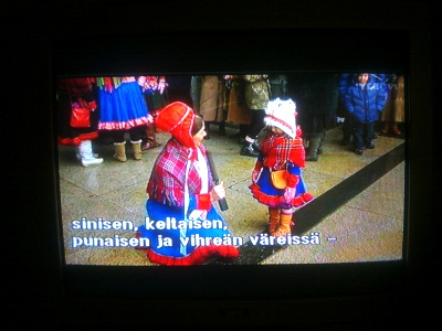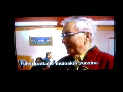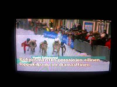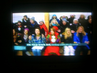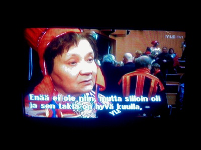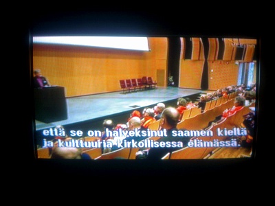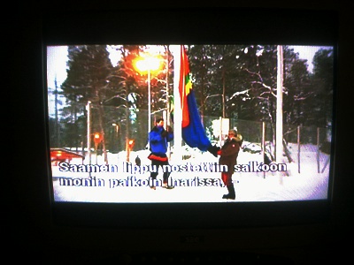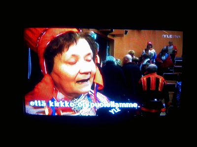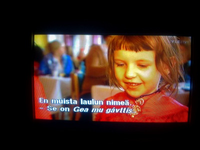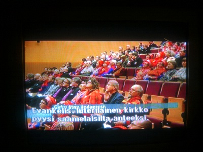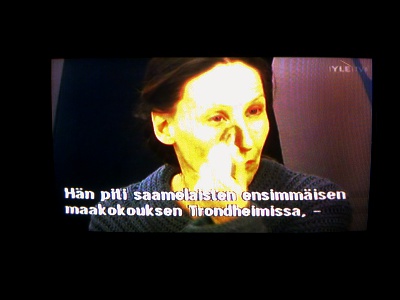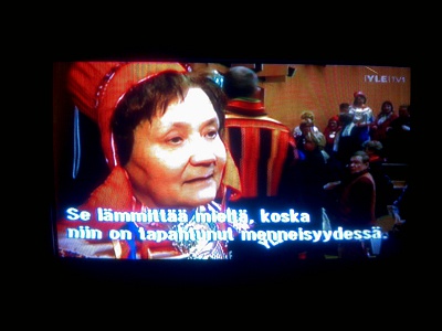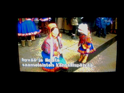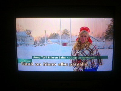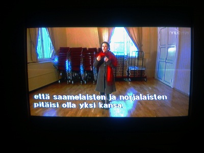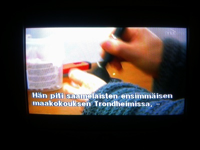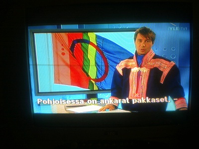 Mobikameralla otin kuvia saamenkielisestä uutislähetyksestä. Kuvista noin viidennes ei onnistunut, joten seuraavassa on puutteita. Puuttuvat kuvat ja tekstit pitää sitten vain hyväksyä ja muistella mitä niissä oli, jos lähetyksen näki. Kokonaan näkemättömille ne kuitenkin tuovat edes hitusen siitä maailmasta, josta valtavirrassa ei juuri kerrota.