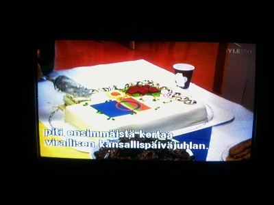 Ylen kuuluttaja illan päättyesssä: "... ja illan päättää Apinatasavalta." Apinatasavallan jälkeen lähetetystä saamenkielisestä uutislähetyksestä Oddasat ei sanaakaan. Ihan varma en tietenkään voi olla mainittiinko kansallispäivänä kertaakaan saamelaisista mitään missään ohjelmassa, mutta niissä parissa illan uutislähetyksessä, jotka näin, ei ainakaan.