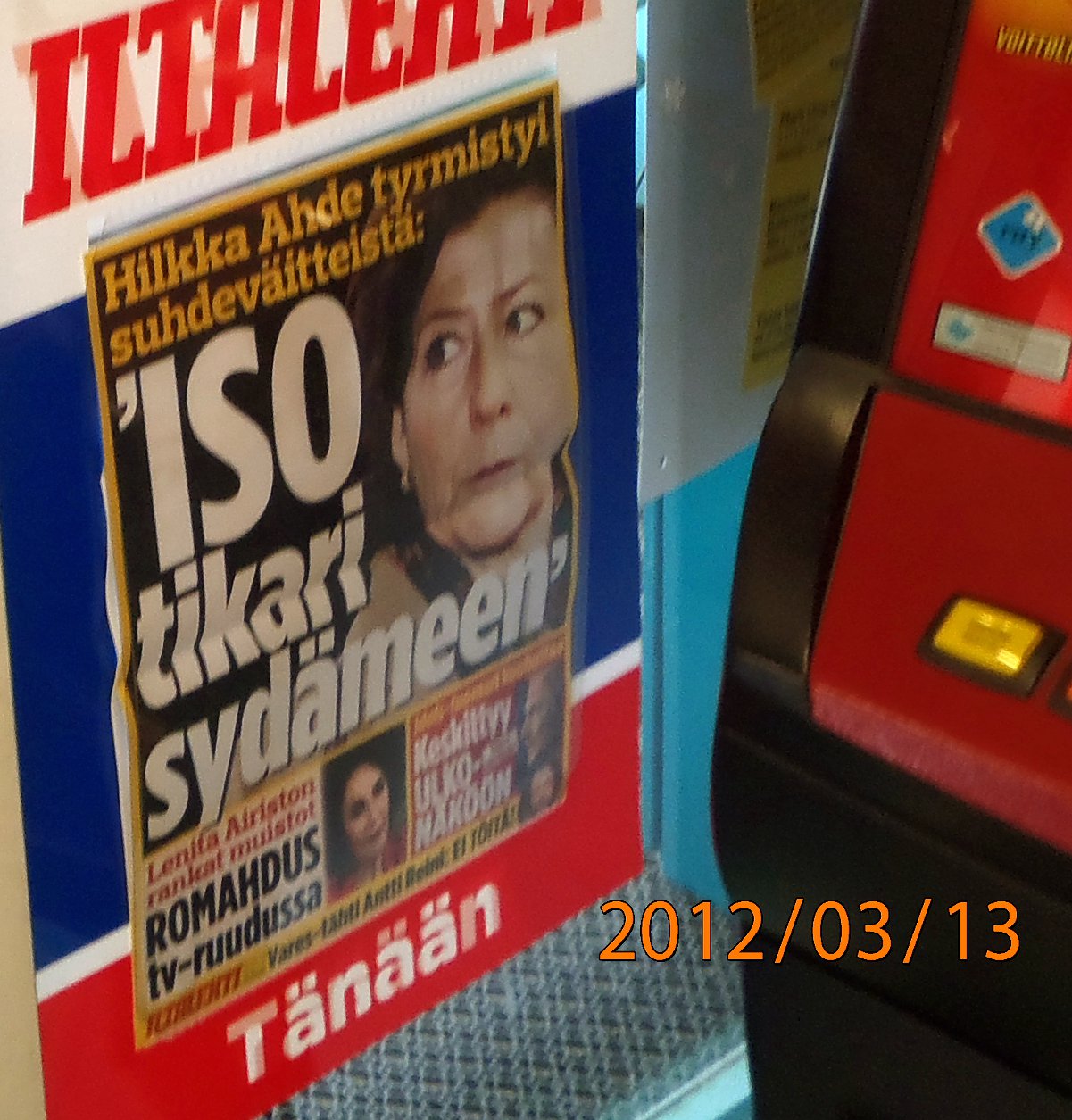 Maanantai 2012-03-05"Harrastakaa!"Keski-Suomi. Jyväskylä, Vaajakoski. Mobikuva Pertti Manninen torstaina 2012-02-16 15:32.Hakkarainen, kalsarit ja Ilta-Sanomat.ILTA-SANOMAT ON SAANUT TIEDON KANSANEDUSTAJA TEUVO HAKKARAISEN KALSAREISTA.NE OVAT EDESTÄ KELTAISET JA TAKAA RUSKEAT ...Lue lisää! |