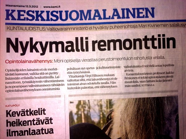 Keskisuomalainen maanantaina 2012-03-13.Nykymalli remonttiin.