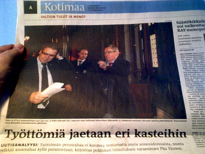Nettisanomat ja Viikkosanomat julkaisivat aprilillipäivänä 01.04.2012 kirjoitetun blogi-kirjoituksen ”Urpilainen rinta rottingilla väärää tietoa. Veronkorotukset kohdistuivat sittenkin enemmän tasaveroon, siis arvonlisäveroon.” Kirjoitukseen liitetyssä laskelmataulukossa ”Hallituksen säästöpaketin veronkorotukset” käy vääjäämättämästi ilmi, että HS on piristynyt. Nyt se kertoo asioista oikeilla nimillään. Jo aikaisemmin oli tarkoitus kehua sitä, että opiskelijoiden asiaa ja tilannetta tarkastellaan myös opiskelijoiden näkökulmasta eikä väitetä heitä laiskoiksi loisiksi niinkuin edellisen päätoimittajan aikakaudella tehtiin. Tämä kehu ei tee kuitenkaan tyhjäksi sitä, että lehdellä näyttää edelleenkin olevan missioita: Nato ja Perussuomalaisten nujertaminen. Nyt ne tehdään vain taitavammin: Jätetään kertomatta epämiellyttäviä tilanteita. Esim. tutkimusta, jossa nuoriso suhtautui Natoon kielteisesti, ei selostettu ollenkaan. Uutena mollaamisen aiheena on Perussuomalaisten toimiston muuttaminen suurempiin tiloihin. Kyllä siinä kahvi oli mennä aamulla väärään osoitteeseen, kun HS:n uutispääsivulla oli otsikko: ”Arvohuoneiston osto oli virhearvio Timo Soinilta”. Jotenkin otsikon koki niin nyt näiden Finnairin Mika Vehviläisen ja SFP:n Stefan Wallinin asuntokauppojen sotkussa puheenjohtaja Timo Soinillekin on ostettu uusi asunto! HS:n toimittaja Unto Hämäläinen oli otsikoinut juttunsa raflaavasti ”Timo Soinin viimeisin virhe”. Alaotsikossa sitten selostettiin virhettä ja arvioitiin koko puolueen, ei siis jonkun yksittäisen edustajan, olevan pikkuhuppelissa! "Perussuomalaiset ostivat hulppean päämajan Helsingin keskustasta. Onko puolue edelleen pikkuhuppelissa jytkystä?" Toimittaja Hämäläinen arvioi huoneiston hinnaksi noin 4 kk:n puoluetuet. Jos hinta-arvio on oikea se on siis 1/12 osa puolueen saamasta puoluetuesta tällä vaalikaudella. Sijoituksen arvioiminen jääköön puolueväelle. Virhearviosta puhuminen tässä vaiheessa on tietoista nälvimistä, kun edustaja Teuvo Hakkarainenkin näyttää selviävän ongelmastaan ja vaikkei selviäisikään, niin mitä sekään HS:lle kuuluu, jättäköön asian Seiskalle! Nettisanomat. Pertti Manninen. Pääsiäinen. Maanantai 2012-04-09 14:11. |