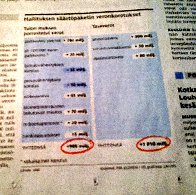 Kirjoitukseen liitetyssä laskelmataulukossa ”Hallituksen säästöpaketin veronkorotukset” käy vääjäämättämästi ilmi, että