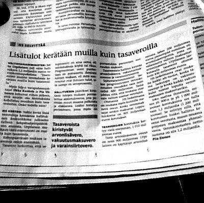 Nettisanomat 2012/04/10 - HS laski valtiovarainministeri Jutta Urpilaisen väitteen veronkorotusten kohdistumisesta suurimmalta osaltaan muuhun kuin tasaveroihin vääräksi. - Kuva: JuttaUrpilainen puhuu pötyä Ville Niinistön ja Jyrki Katasisen Seuratessa vieressä. - Kuva. Paketit pellolla. - Kuva. Sateen jälkeen - Vetoomus: Jyväskylän lyseo tulee säilyttää - Kuva. Memphis. Jyväskylä - Kuva. Uusi lumi on vanhan surma - Arkisto 2005 Pääsiäinen. Il Vangelo secondo Matteo 1964 Immagini - Billion Euro House opened by Dublin artist - Caj Bremer-näyttelyn esittely-linkki - Kuva. Tuulta päin. - Kuva. Suudelma huhtikuussa. - Mainoksia lumessa, illemmalla sen sulaessa! - Kuva. Häikäisevä kirkkaus. - Urpilainen rinta rottingilla väärää tietoa. - Wallinin lähtö harmittaa Kataista. - Jyväskylän kaupunginjohtaja Markku Andersson. - "Tämä on natsivaltio eli poisto kauppakeskuksesta. Jyväskylä. Forum." - Valokuvaaja, akateemikko Caj Bremer esittelee näyttelyään Keski-Suomen museossa Jyväskylässä. - Kuva. Pysäkki 3. -- Kuva. "Power, power". Nuorisojoukko intoutuu ... - Kuvia. Instanssi 2012. Digitaalisen tekemisen festivaali. - Kuva. 4 koiraa lumisella kadulla taitavan taluttajan ohjauksessa. - Kuva: Harrastakaa! - Kuvia. Jyväskylä 7's Snow Rugby Tournament 2012. Kuva. "Baanalle on päästävä maaliskuun alun aurinkoisena päivänä." - TOP 20 - Tammikuu 2011 - Nettisanomat/ Sanomanetti-sivustot. Eri kävijät. - Kuvat. "01.01.2012". - Lukijan kuva: "Katso tuolla on Hakkarainen!" - Kuva. Käden ojennus. Karuselli. - sunnuntai 08.04.2012 - etusivu - Nettisanomat - Sanomanetti - Blogi: Viikkosanomat.fi - Kuvasanomat - Sanomatori - Viikkosanomat - Härkää sarvista - 12.fi - Pötyä, Jutta Urpilainen, Jyrki Katainen, Ville Niinistö, tasavero vs, tulovero - sateen jälkeen - Vetoomus: Jyväskylän lyseo tulee säilyttää - Memphis, Uusi lumi on vanhan surma, - Suudelma kadulla |
