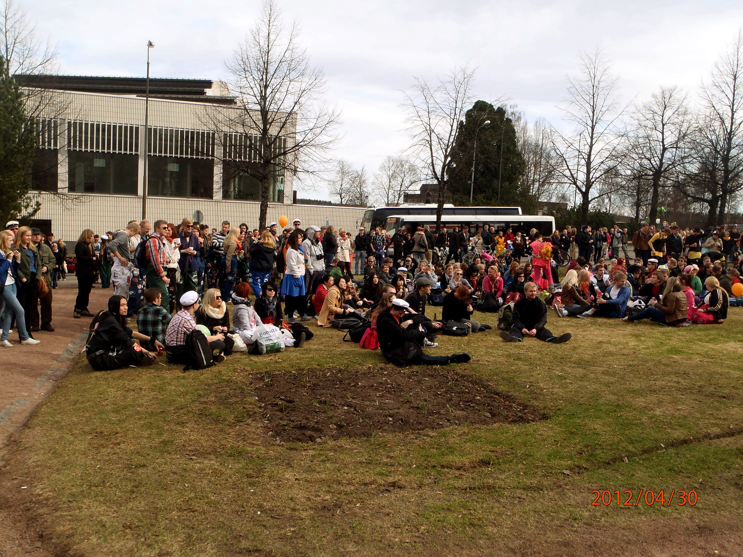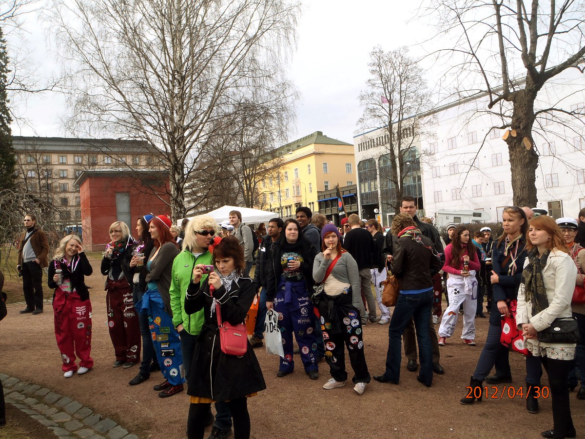 MINNALLA VAPUN AATTONA 2012 - PUHKUPILLIT MELKEIN KOKONAAN - PUHEISTA PARI PÄTKÄÄ - YLEISÖÄ YMPÄRIINSÄ - AMAZING RACE JYVÄSKYLÄ -KILPAILUN FIILIS- PALKINNON RATKAISU HUUTOÄÄNESTYKSELLÄ - LAKITUS - GAUDEAMUS IGITUR KAHTEEN KERTAAN - JATKOILLE VAPAUDEN KATUA PITKIN. |