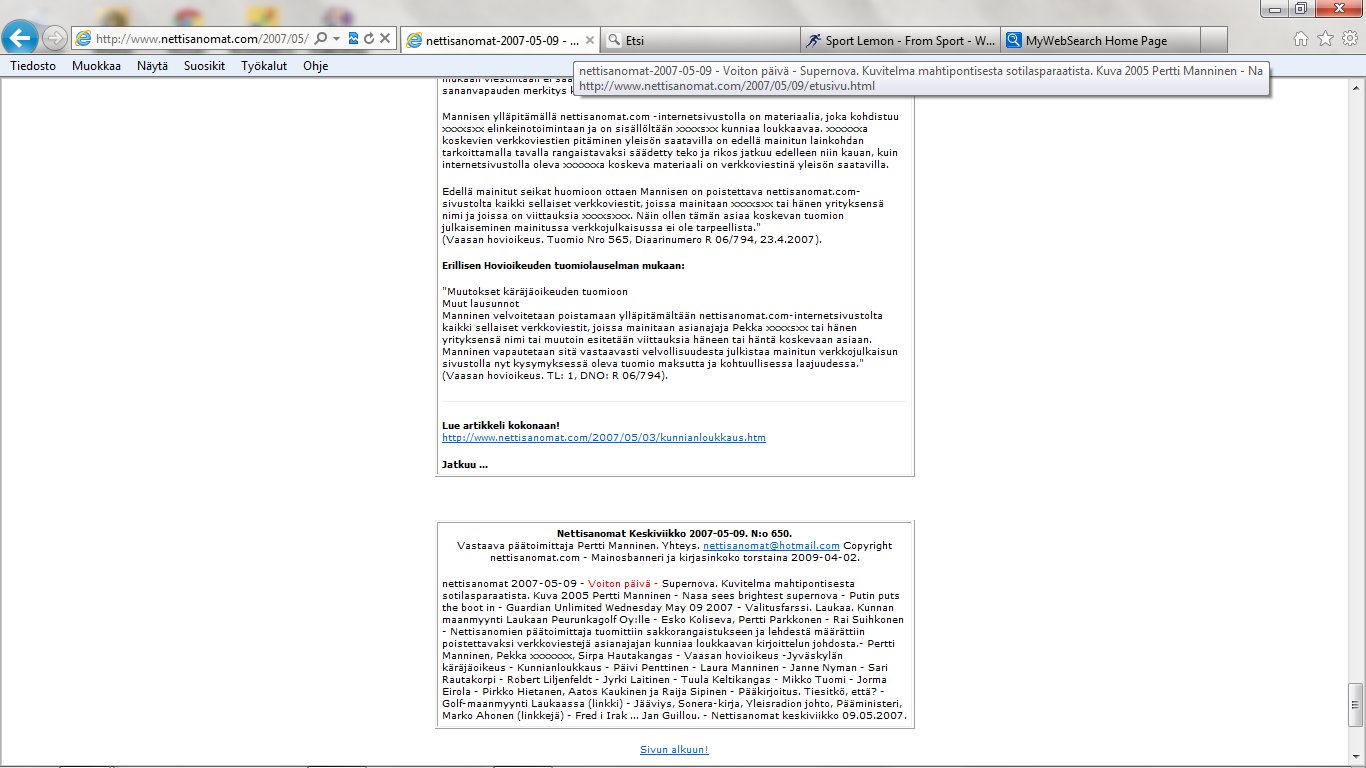 päätoimittaja Pertti Manninen. Yhteys: nettisanomat @hotmail.com -