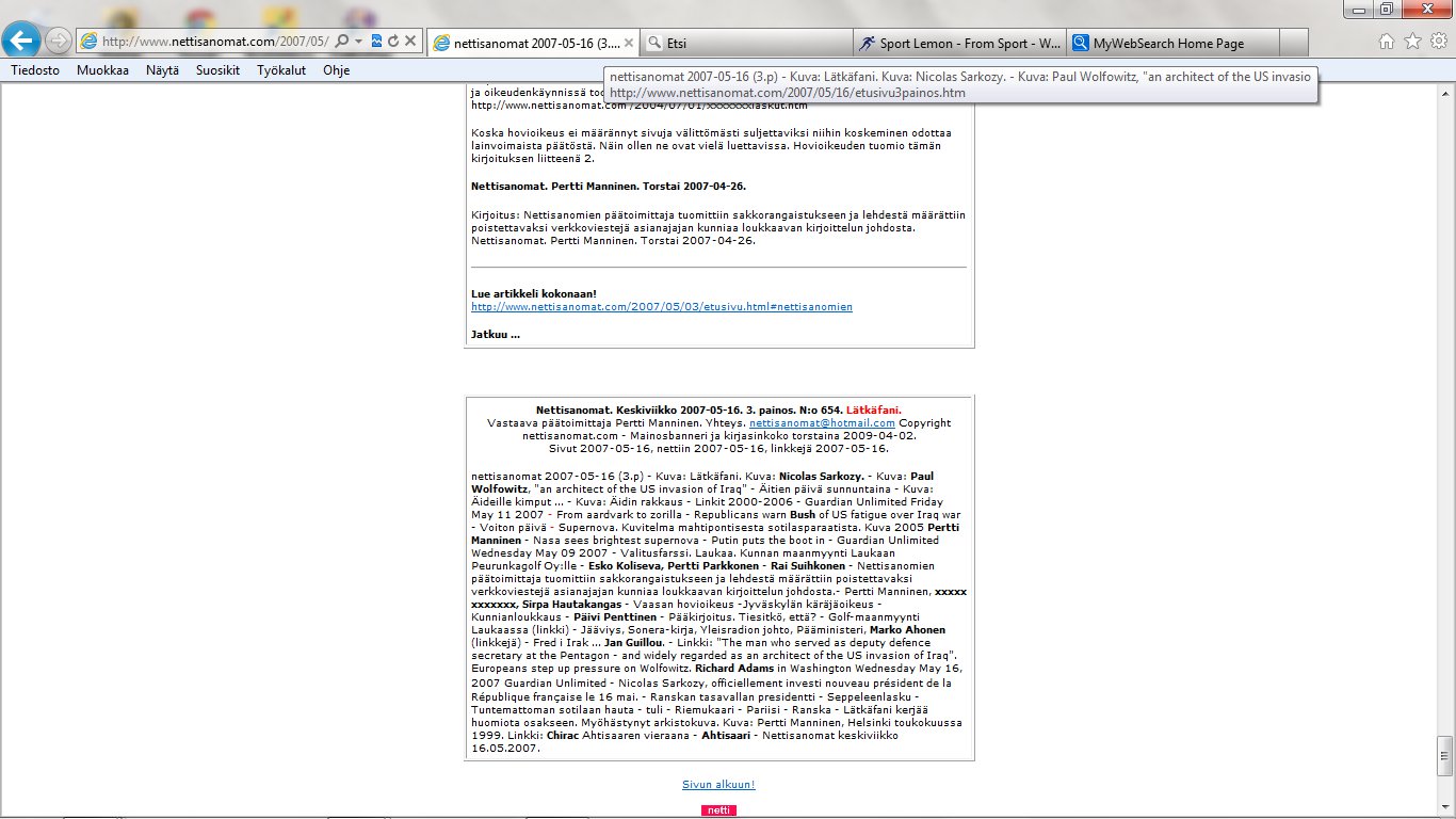 päätoimittaja Pertti Manninen. Yhteys: nettisanomat @hotmail.com -