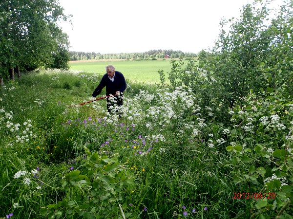 "Antti raivaa tietä mummunsa mökille tuulisena päivänä juhannusviikolla 2012". Kanta-Häme. Humppila. Keskiviikkona 2012-06-20 klo 11:15- 11:20. Kuvat Pertti Manninen. |