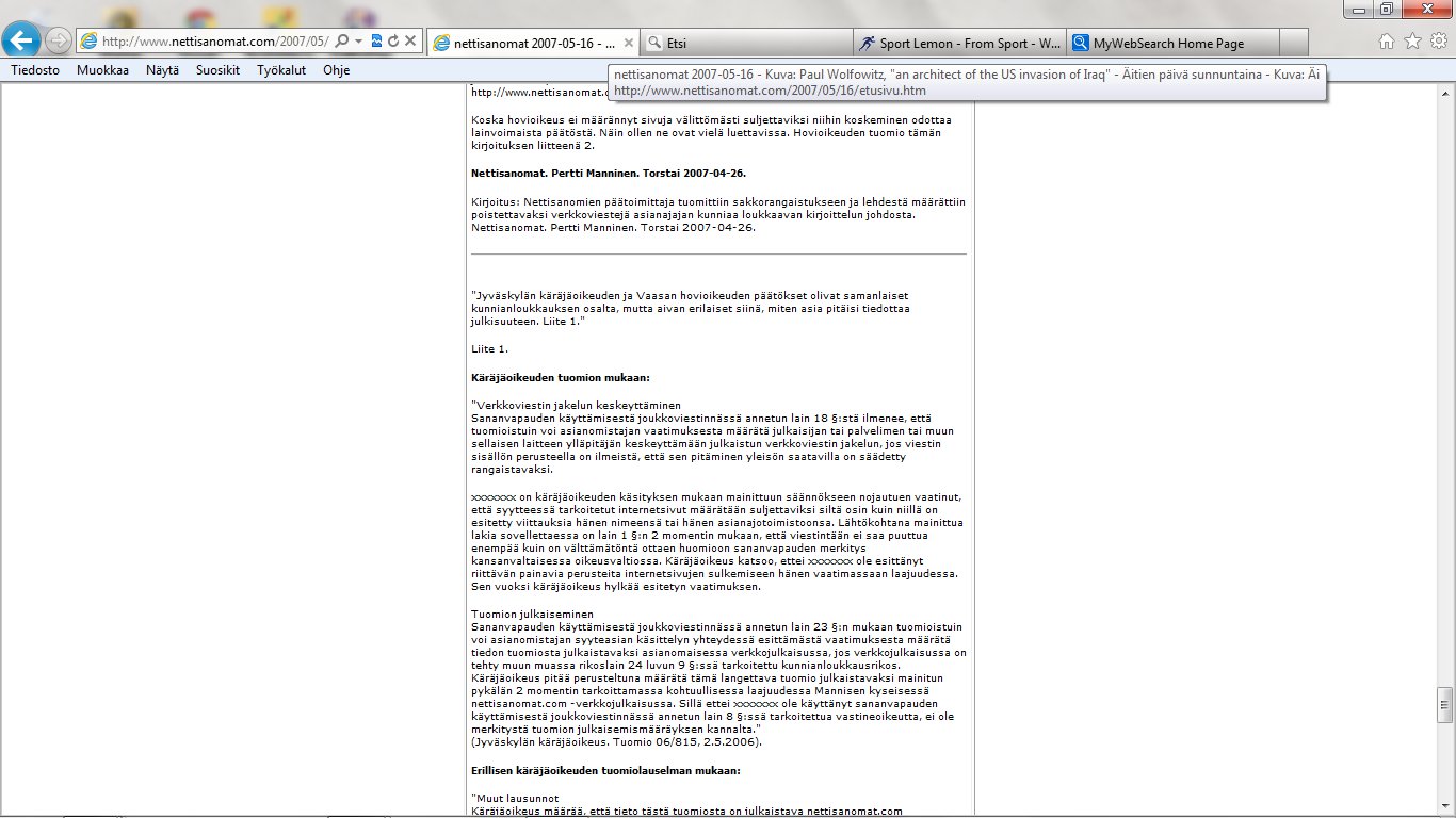 Nettisanomat 2012/06/23 - LIITE. Sivut 49-58/ 565. Sivuja, joissa tuomio on pantu täytäntöön. - VALITUSLUPAHAKEMUS KORKEIMMALLE OIKEUDELLE: Tuomio ja seuraamismääräys sellaisesta rikolliseksi väitetystä teosta, jota ei ole käsitelty oikeudessa ja oikeudessa rikolliseksi todettu, ei ole kansanvaltaisen oikeusvaltion oikeusjärjestyksen mukainen. - Kuva. Poika ja koira. - Kuva. Käden ojennus. Karuselli. - Lauantai 23.06.2012 - etusivu - Nettisanomat - Sanomanetti - Blogi: Viikkosanomat.fi - Kuvasanomat - Sanomatori - Viikkosanomat - Härkää sarvista - 12.fi -Korkein oikeus, sananvapaus, rajoittaminen, tuomio, käräjäoikeus, kansanvaltainen oikeusvaltio, oikeusjärjestys |
