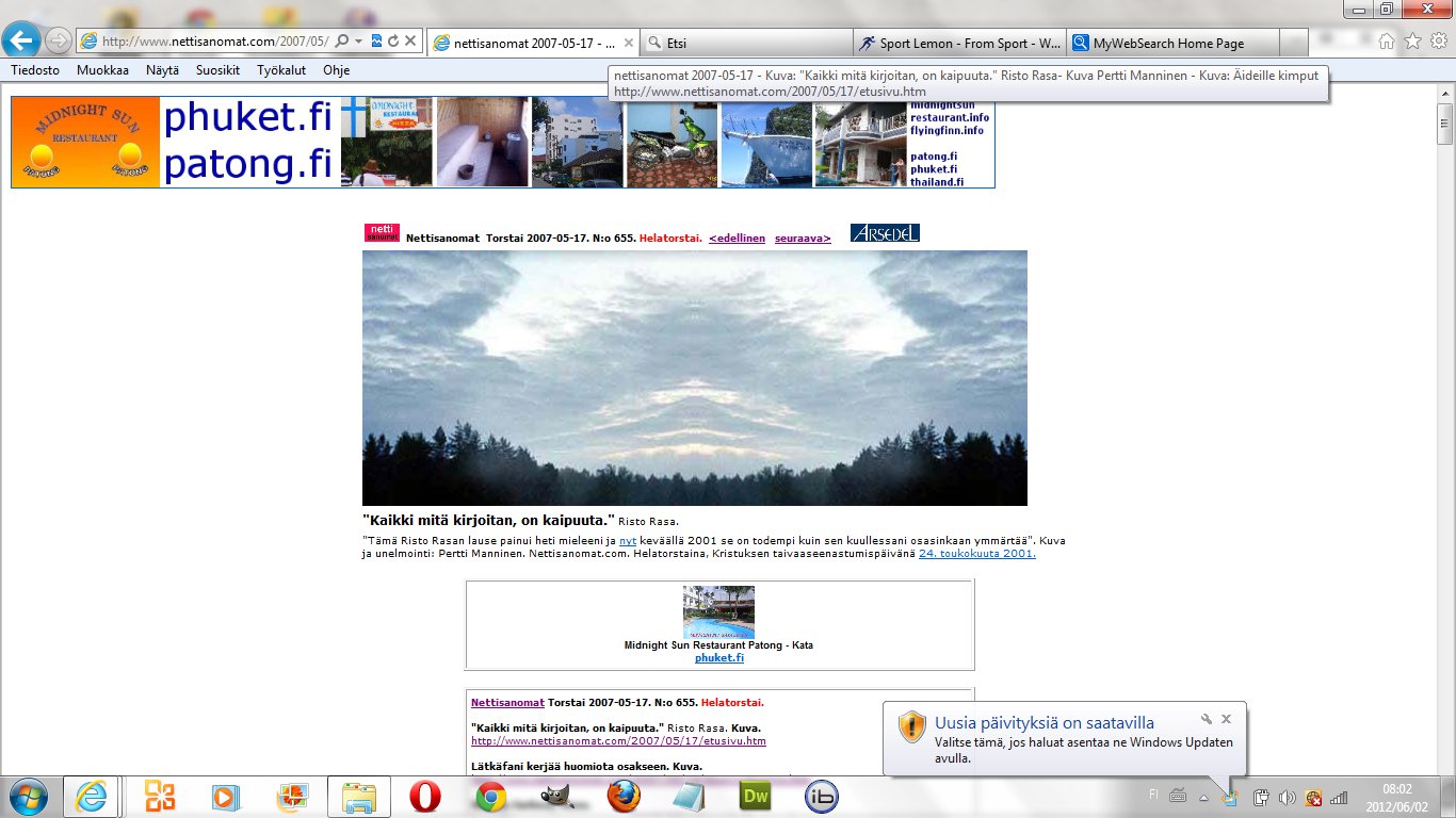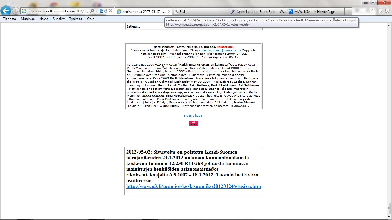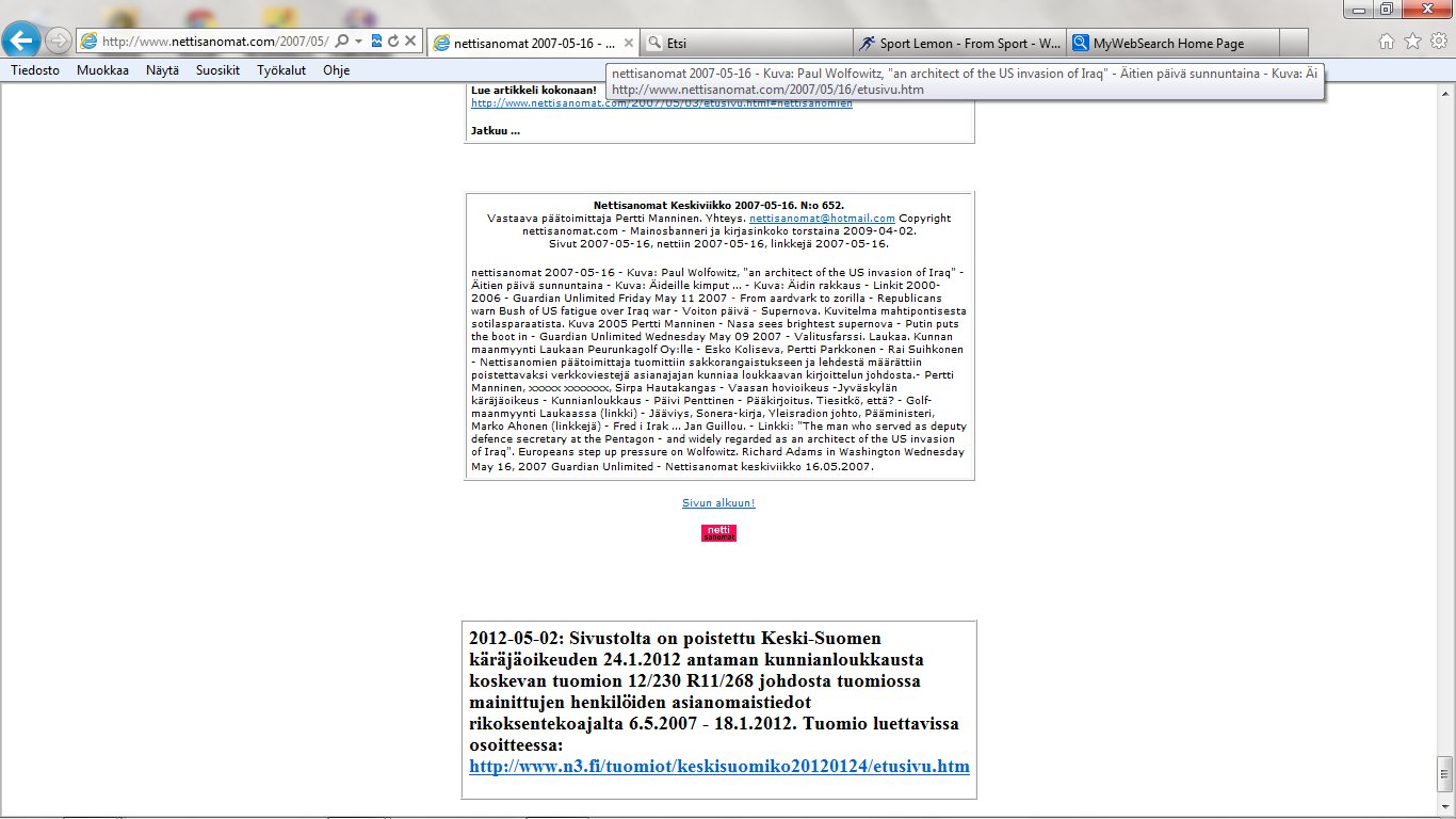 Sivu Sivu 2012-06-23 ja 2012-06-24 ja 2012-06-25, nettiin 2012-06-25 19:07, linkkejä