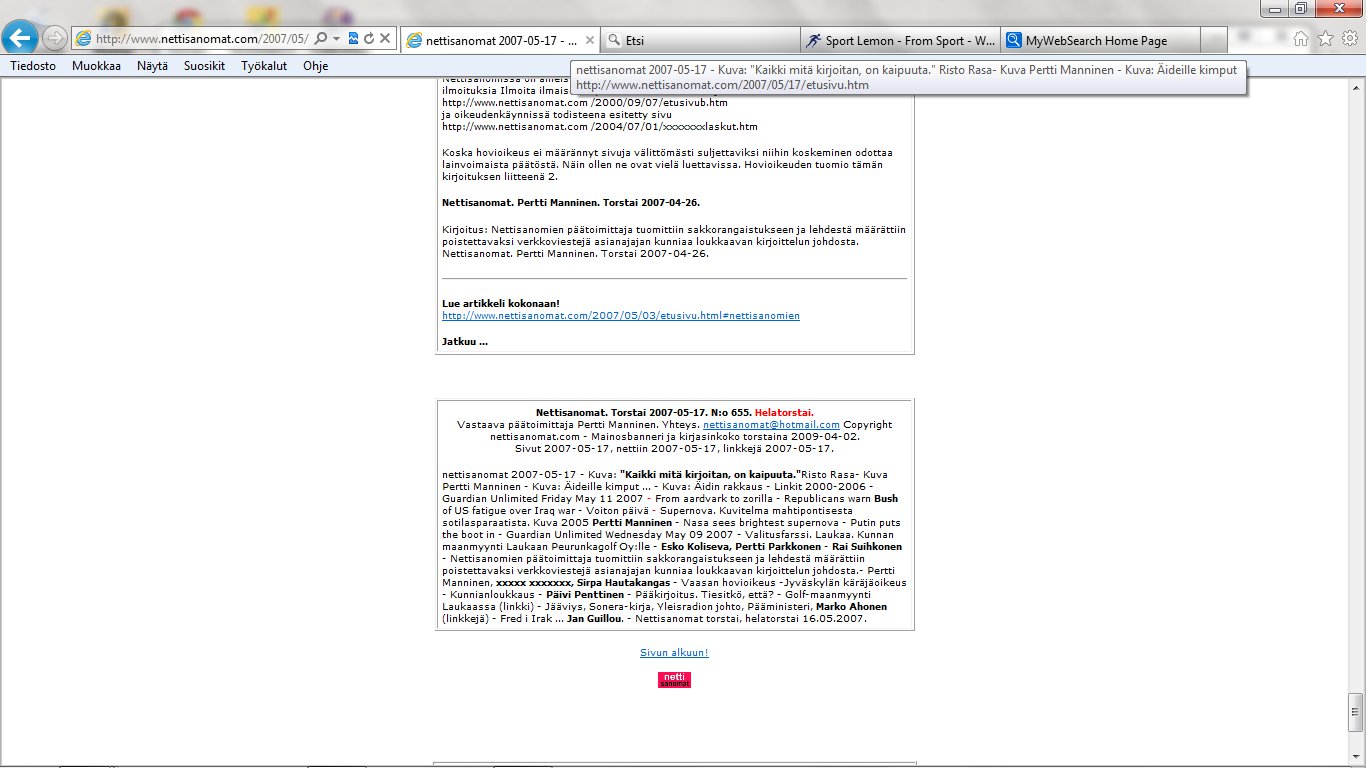 päätoimittaja Pertti Manninen. Yhteys: nettisanomat @hotmail.com -