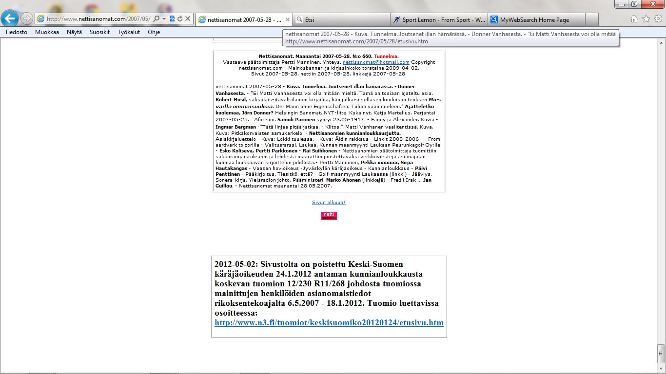 Sivu 2012-06-25 ja 2012-07-08, nettiin 2012-07-08 09:13, linkkejä