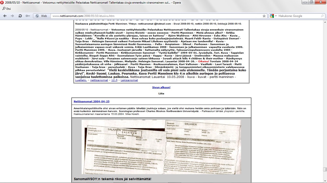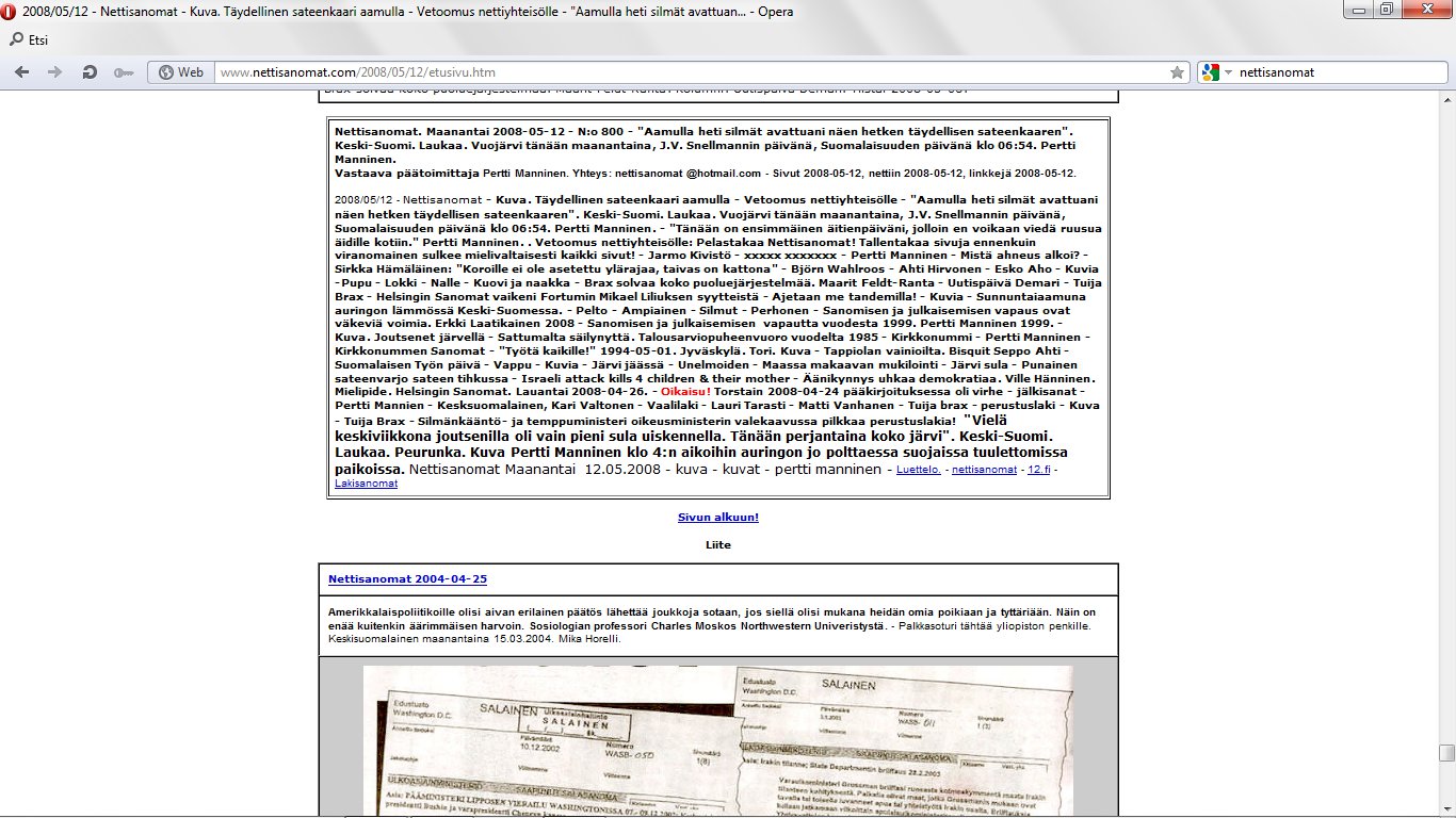 päätoimittaja Pertti Manninen. Yhteys: nettisanomat @hotmail.com -