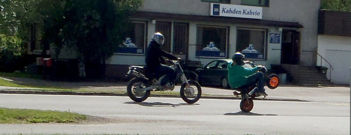 "Astelua asfaltilla". "Poika ja koira". "Sävyt". Keski-Suomi. Jyväskylä. Vaajakoski. Urheilutie maanantaina 2012-06-11 klo 12:49. Kuva Pertti Manninen. |